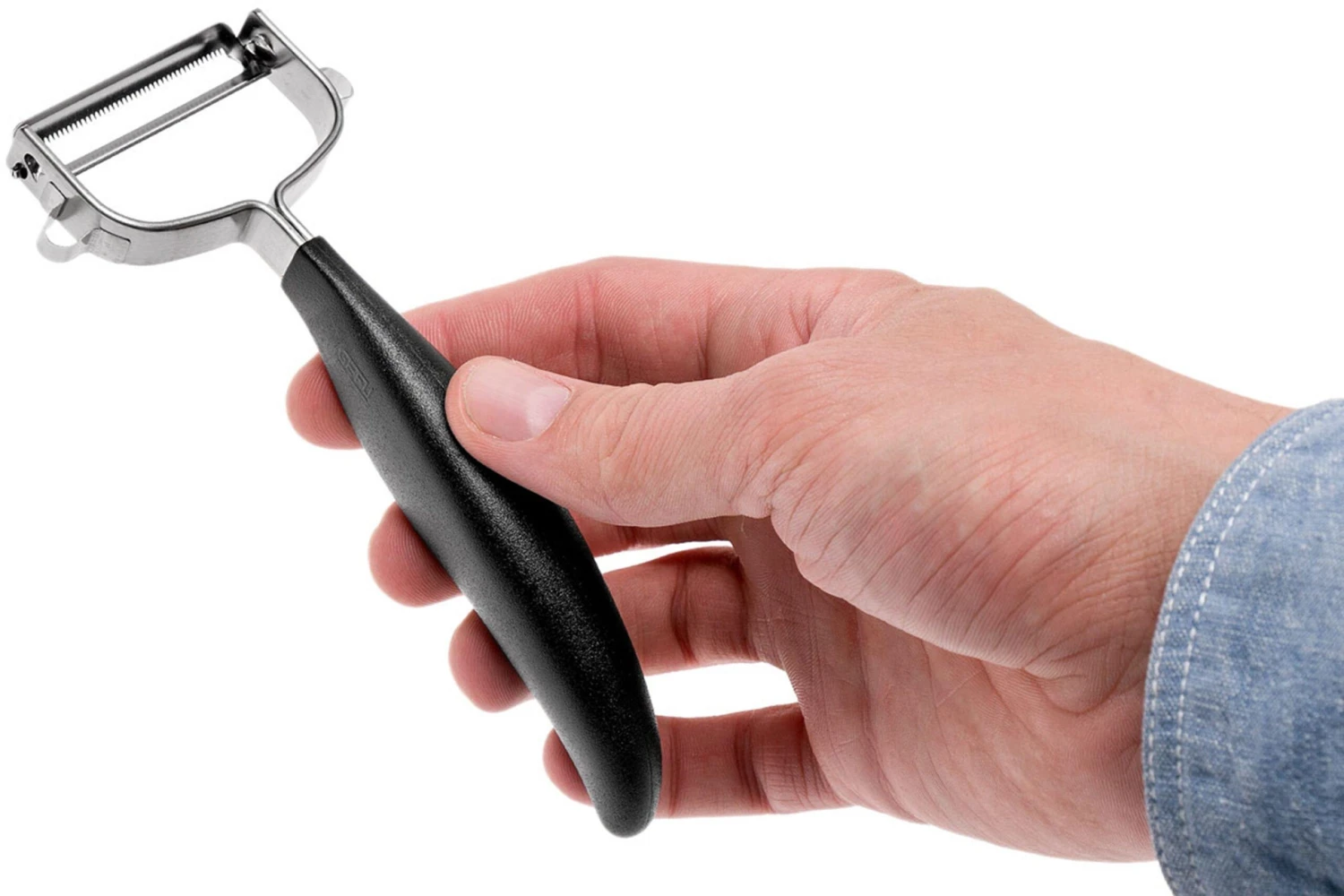 Le GEFU Pomodoro possède une lame dentelée en acier japonais. Avec ce couteau, vous épluchez facilement tomates, poivrons et kiwis. On pèle facilement les tomates en les passant sous l’eau bouillante. Cet éplucheur japonais est en acier premium. La lame est légèrement dentelée. On va donc éplucher sans effort. La lame du dessous est bien fine. Elle permet d’éviter que la chair reste collée à la lame.