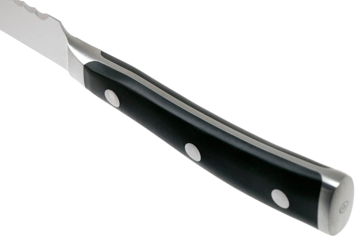 Le couteau à tomates Wüsthof Classic Ikon 14 cm est, comme son nom l’indique, un couteau parfait pour trancher les tomates. Sa lame dentelée permet de traverser la peau d’une tomate sans l’écraser. Après avoir coupé les fruits et légumes l’extrémité pointue de la lame permet de les piquer pour les déplacer.